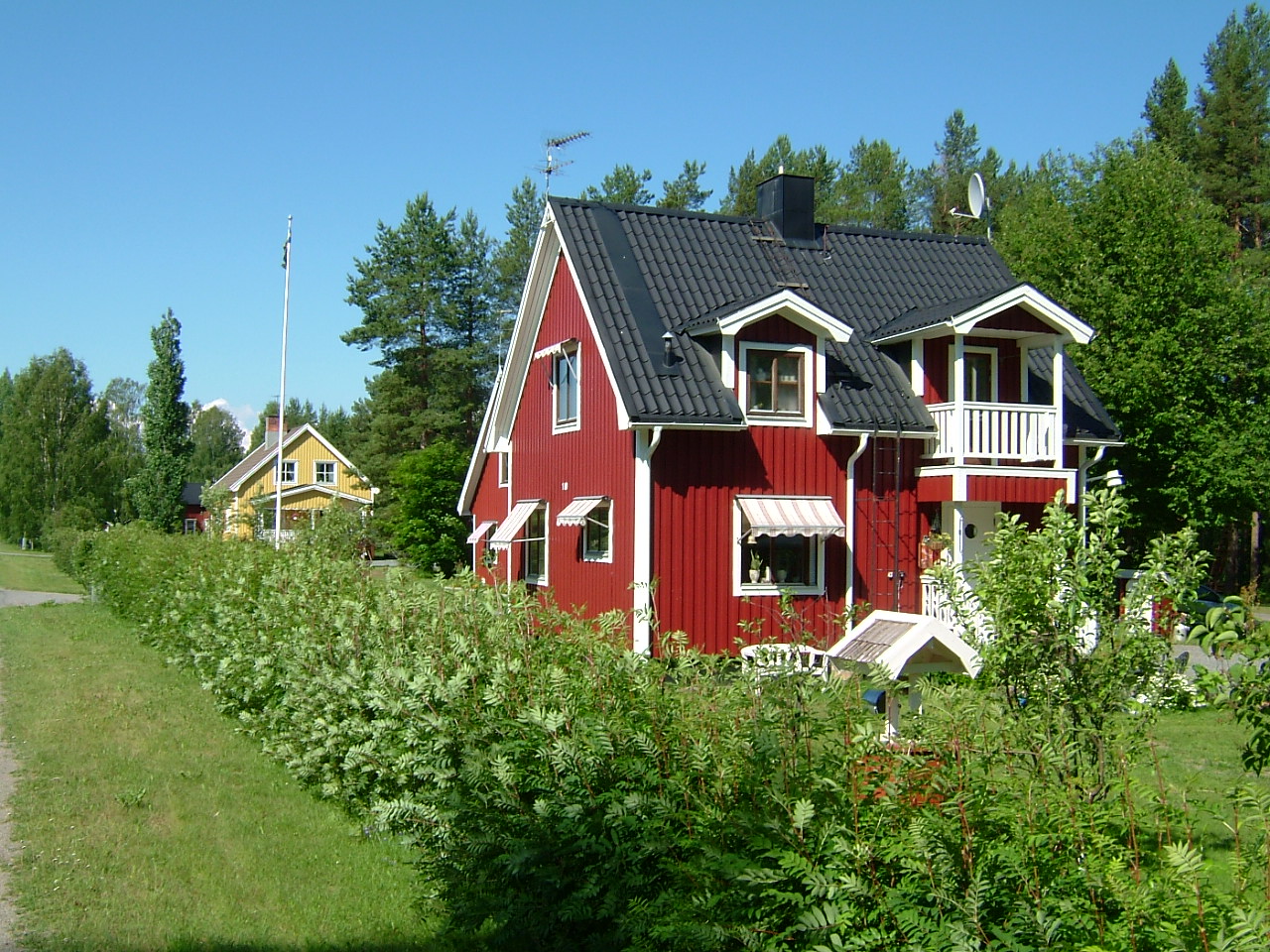 Schwedische Holzhäuser in den typischen Farben Gelb und Rotbraun
