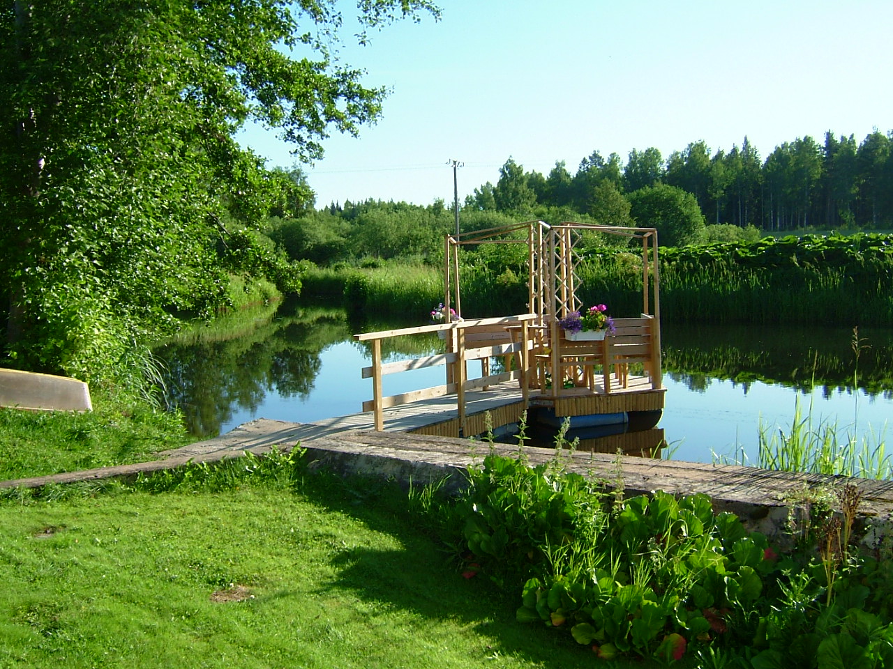 Dann schaue ich mir den Teich mit Badesteg an, der zum Grundstück gehört und bin finster entschlossen, jetzt endlich einmal zu baden. Aber als ich die Treppe des Badestegs vorsichtig hinuntersteige und die Kälte des Wassers im gleichen Maße an mir emporklettert, verlässt mich der Mut und ich gehe doch lieber gleich weiter zur Dusche.