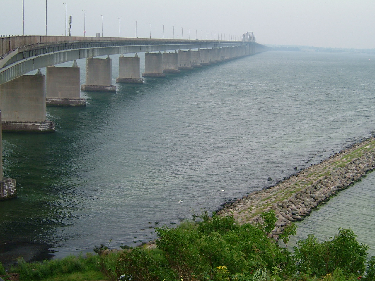 Die Strecke heute führt mich von Vordingborg (Seeland) über eine endlos lange Brücke zur Insel Falster und von dort auf die Insel Lolland, von deren Südspitze aus ich dann ab Rödbyhavn nach Puttgarden (Fehmarn) übersetzen will. Der Wind bläst frisch von rechts vorn, so dass die Fahrt einigermaßen anstrengend ist. Die Storströmbrücke ist mit mehr als 3 km so lang, dass ich sie bei der leicht diesigen Sicht gar nicht komplett überblicken kann. Der Belag ist nicht mehr ganz neu, aber das ist bei dem Alter der Brücke (1937 erbaut) auch nicht verwunderlich. Es ist fast kein Verkehr darauf, und so kommt bei der Fahrt hoch über dem Meer ein Moment der Losgelöstheit auf, der allein schon die heutige Etappe lohnenswert macht.