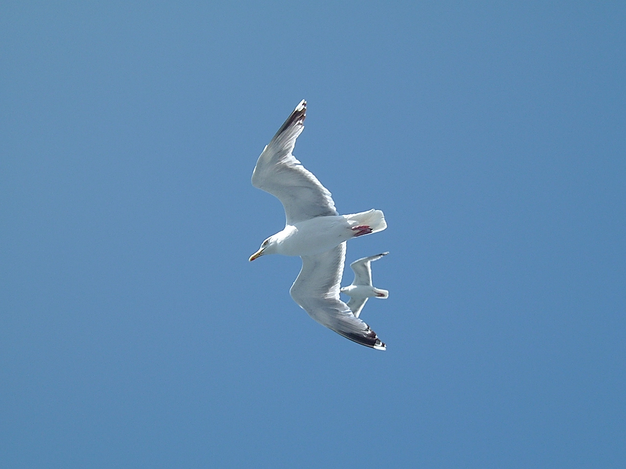 An Deck des Fährschiffs, das mich nach Puttgarden bringt, nehme ich eine Möwe auf, die uns begleitet, sozusagen als Symbol für die lange, unbeschwerte Reise, die sich jetzt dem Ende zuneigt.
